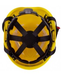 Casco IRUDEK OREKA para trabajos en altura. Ligero, ventilado y con barboquejo. Certificado EN397 y EN12492. Grupo Sima.