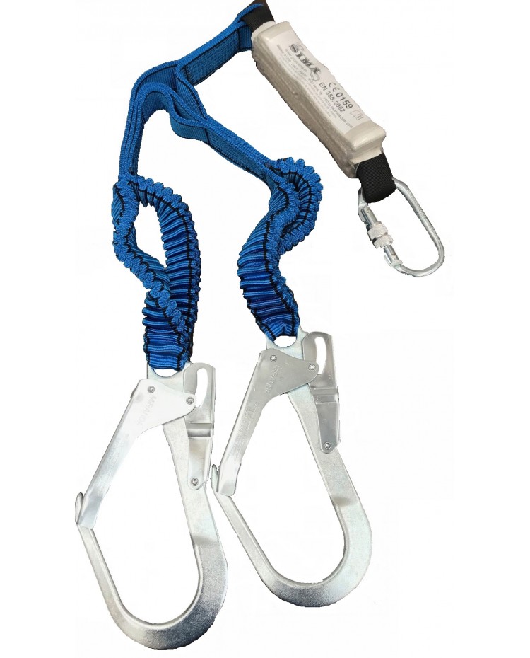 Elemento de amarre IRUDEK K33 con absorbedor de energía y ganchos de acero. Certificación EN 355. Seguridad profesional. Grupo Sima. 1,70 M.